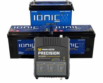 Ionic Deep Cycle Lithium Batteries are lightweight, keep you on the water all day, bluetooth enabled to let you know exactly what the charge is, and have one of the best prices around for lithium batteries.