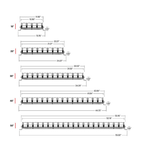 The Adapt™ LED Light Bars are the world’s first off-road lighting products that can change instantly according to conditions. Adapt offers 8 selectable beam patterns that range from a 90 degree broad short-distance beam to a highly focused 15 degree long-distance spot beam in a single fixture. It also includes RIGID’s new Active View™ Technology, which allows the beam pattern to actively adjust with vehicle speed. There are no moving parts within the Adapt. Instead, RIGID uses advanced LED technology and combines it with optics to create a revolutionary lighting solution that can Adapt with changing conditions. Further, Adapt has built-in accent lighting that can be set to any color in the light spectrum, including white, for a custom look around town. The Adapt has a signature new look that is unlike any other light bar on the market, and it even has expanded mounting capabilities that include new base-mounting options in addition to traditional side mounts. Adapt LED light bars include a RIGID Dash Controller, which is a molded backlit dash-mounted unit that offers easy, intuitive control of Adapt’s beam patterns, Adaptive Mode, accent lighting, and programmable presets. RIGID Adapt Light Bars are available in 10-inch to 50-inch lengths and include a RIGID Dash Controller, Under Dash Module, wiring harness, and mounting hardware. With the RIGID Adapt, it has never been easier to Own the Night.